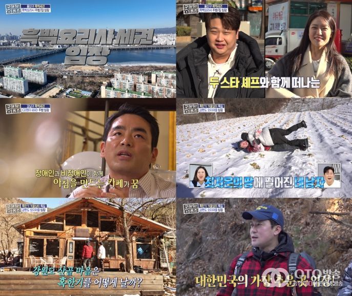 oto방송 김민석 기자 | 12일(목) 방송된 MBC ‘구해줘! 홈즈’(연출: 정다히, 남유정, 허자윤, 김성년 / 이하 ‘홈즈’)에서는 지난 회차에 이어 ‘흑백세권’ 특집으로 프렌치 파파의 공간을 임장했다. 이후 본격적인 ‘강원도 혹한기’ 특집이 시작되며 오지마을에서 겨울 살아보기 임장에 나섰다.