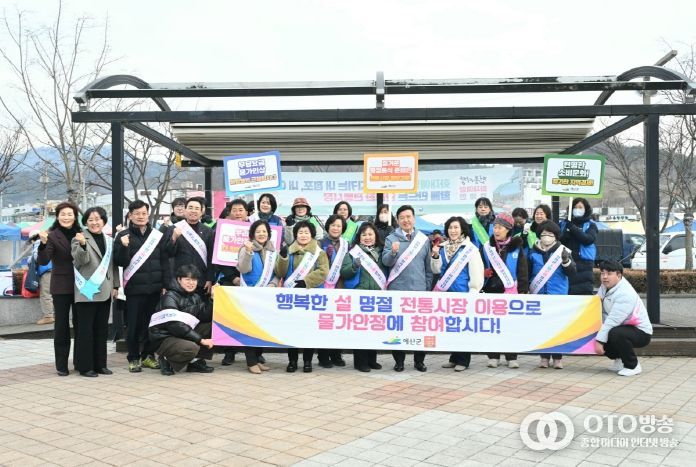 oto방송 김민석 기자 | 예산군은 설 명절을 맞아 관내 전통시장 정기 오일장 일정에 맞춰 담당부서 직원과 소비자교육중앙회 예산군지회 회원 등이 참여한 가운데 전통시장 장보기와 물가안정 캠페인을 펼쳤다.