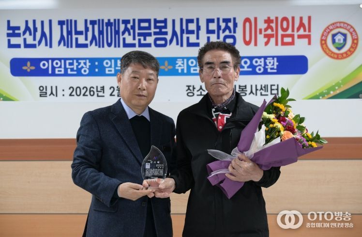 oto방송 김민석 기자 | 논산시재난재해전문봉사단은 지난 22일 논산시자원봉사센터에서 제3대 오영환 단장 취임과 제1·2대 임부산 단장의 이임을 기념하는 이·취임식을 개최했다.