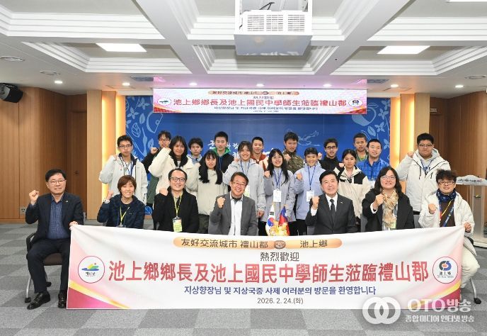oto방송 김민석 기자 | 예산군은 우호교류도시인 대만 타이둥현 지상향 방문단이 2월 24일부터 25일까지 1박 2일 일정으로 예산군을 방문해 청소년 교류 및 문화체험 활동을 진행했다고 밝혔다.