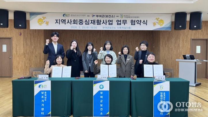 oto방송 김민석 기자 | 부여군은 지난 2월 25일 부여군보건소에서 충청남도지역장애인보건의료센터 및 충청남도보조기기센터와 지역사회중심재활사업의 원활한 추진을 위한 업무협약을 체결했다.