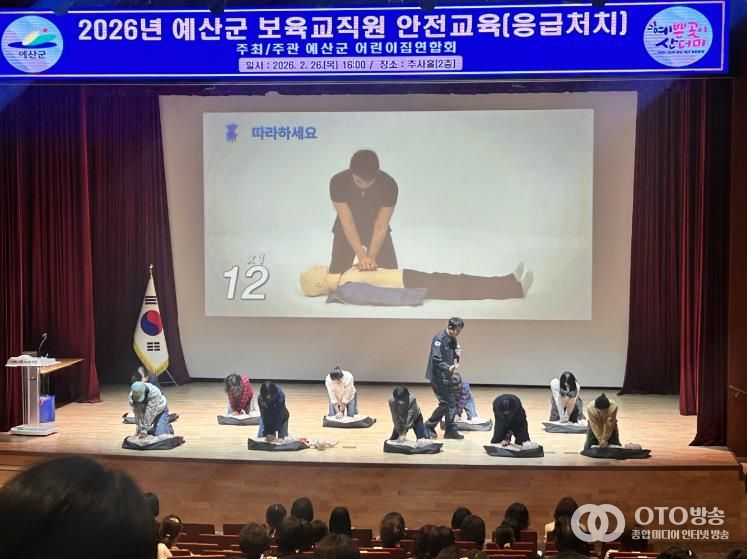 oto방송 김민석 기자 | 예산군은 26일 예산군청 추사홀에서 예산군 관내 보육교직원 250여 명을 대상으로 심폐소생술 등 안전교육을 실시했다.
