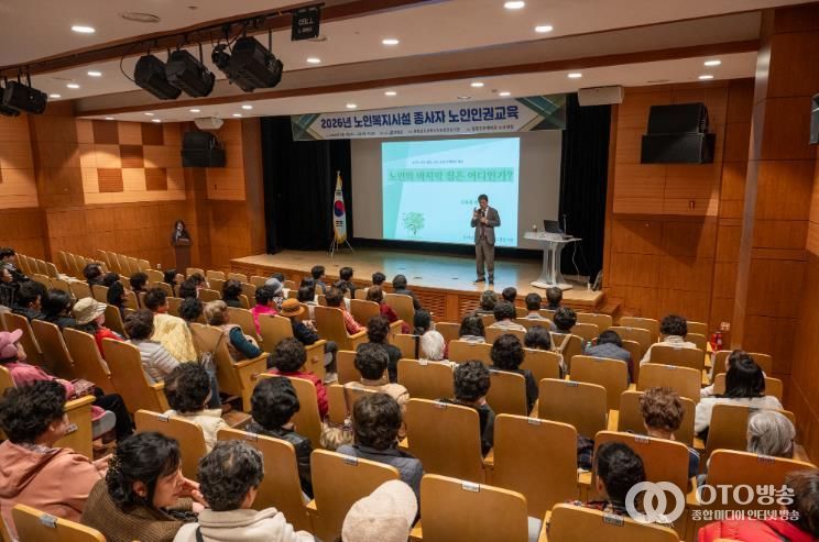 oto방송 김민석 기자 | 청양군이 어르신들의 권익을 보호하고 수준 높은 돌봄 환경을 조성하기 위해 지난 4일부터 5일까지 이틀간 청양문화예술회관 소공연장에서 ‘2026년 노인복지시설 종사자 노인인권 교육’을 실시했다.
