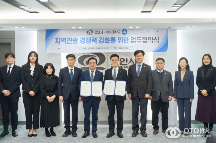 oto방송 김민석 기자 | 천안시가 백석대학교와 손을 잡고 지역관광 경쟁력 강화와 전문 인재 양성을 위한 체계적인 협력 체계 구축에 나선다.
