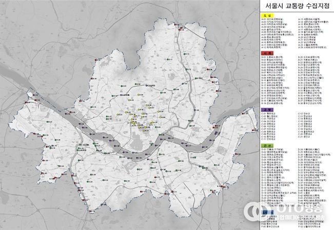 교통량은 서울 시내 주요도로 134개 지점에서 조사했으며, 통행속도는 510개 주요도로를 주행한 택시 위치정보(GPS)와 도시고속도로 내 설치된 1,153대의 지점 검지기 데이터 활용해서 산출했다.