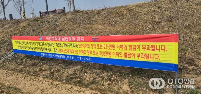 oto방송 김민석 기자 | 안성시가 하천구역 내 불법 점용 행위를 뿌리 뽑고 무단 경작을 예방하기 위해 관내 지방하천 일대에 ‘경작 금지’ 홍보 현수막을 설치하고 집중 점검에 나섰다.
