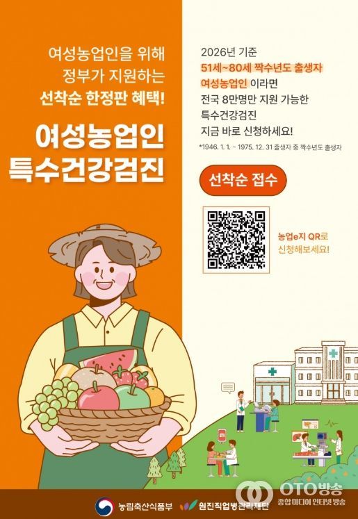 이 사업은 여성농업인을 대상으로 근골격계·심혈관계 질환 등의 질병을 조기에 진단하고, 전문의 상담 등을 통해 예방·사후 관리할 수 있도록 2년 주기로 검진받도록 돕는 사업이다.
