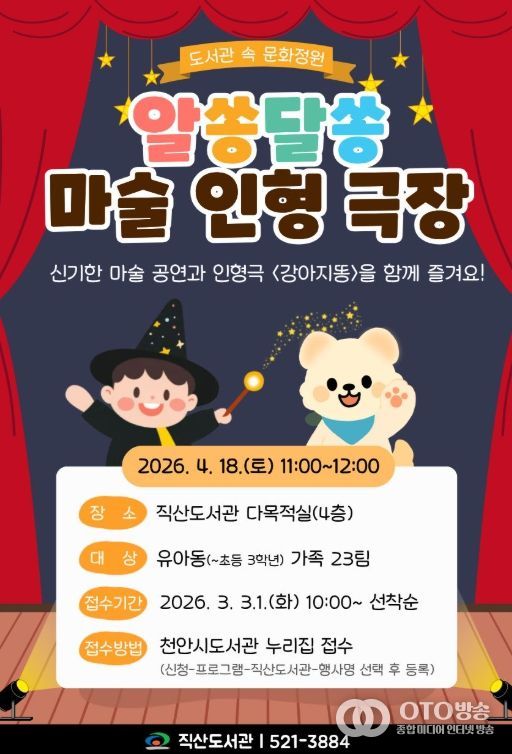 이충미 직산도서관장은 “신비로운 마술이 주는 즐거움과 인형극이 전하는 깊은 감동이 지역주민들에게 특별한 선물이 되길 바란다”고 말했다.
