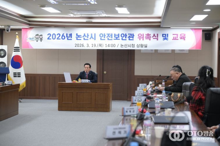 oto방송 김민석 기자 | 논산시는 지난 19일 시청 상황실에서 지역사회 안전문화 확산을 위한 ‘2026년 안전보안관 위촉장 수여식 및 직무교육’을 개최했다.