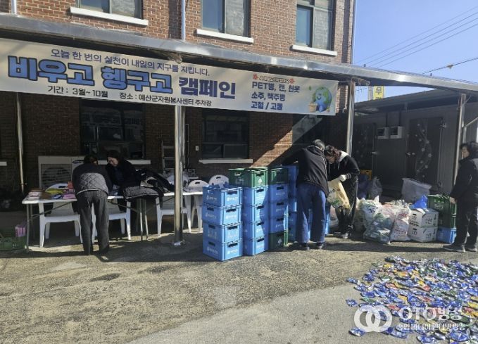 oto방송 김민석 기자 | 예산군자원봉사센터는 탄소중립 실천을 위한 주민 주도형 자원봉사 활동으로 ‘비우고 헹구고’ 환경캠페인을 센터 주차장에서 실시했다고 24일 밝혔다.