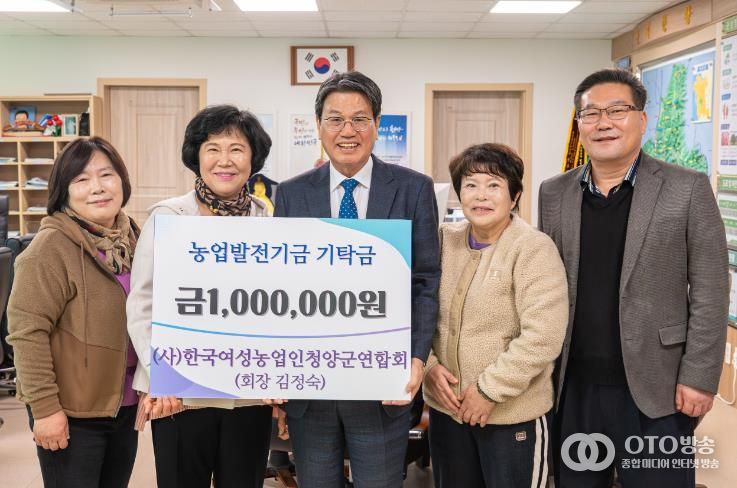 oto방송 김민석 기자 | 한국여성농업인청양군연합회가 지역 농업 발전과 지속 가능한 농촌 사회 조성을 위해 지난 25일 청양군을 방문해 농업발전기금 100만 원을 기탁했다.
