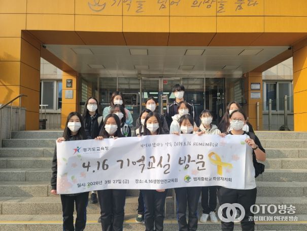 oto방송 김민석 기자 | 안양 범계중학교(교장 박경숙) 학생자치회 학생 20여 명은 3월 27일에 세월호 참사의 교훈을 되새기고 생명 존중 문화를 확산하기 위해 경기도교육청 4.16생명안전교육원(안산시 단원구 소재)을 방문했다. 이번 방문은 매년 범계중학교에서 진행되는 ‘국민 안전의 날’ 행사 진행에 앞서 학생자치회가 주도적으로 기획했다. 12년이라는 시간이 지나 학생들이 ‘세월호 사건’을 잘 체감하지 못하는 것을 인식하고 이를 먼저 느끼고 알리고자 한 것이다.