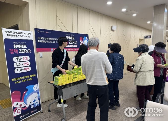oto방송 김민석 기자 | 청양군이 ‘제16회 결핵 예방의 날(3월 24일)’을 기념해 결핵예방주간동안 지역 사회 내 감염 확산을 차단하고 예방 수칙 실천을 독려하기 위한 집중 캠페인을 전개했다고 1일 밝혔다.