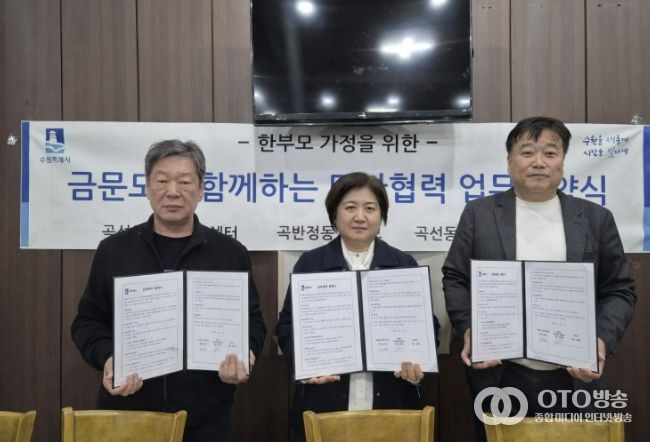 oto방송 김민석 기자 | 수원시 권선구 곡선동 마을만들기협의회는 지난 1일 중식당 금문도와 업무 협약식을 가졌다.