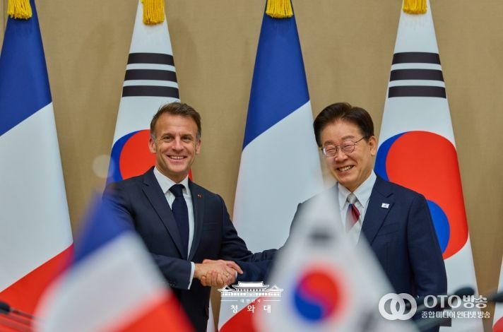 oto방송 김민석 기자 | 이재명 대통령이 3일 한·프랑스 정상회담을 마치고 "원자력·해상 풍력 분야의 협력을 확대해 에너지 안보를 강화하는 한편, 호르무즈 해협 내 안전한 해상수송로 확보를 위해 협력하겠다는 의지도 확인했다"고 밝혔다.