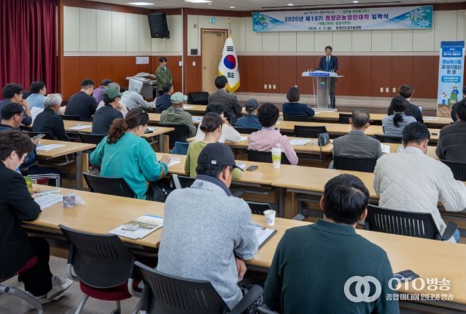 oto방송 김민석 기자 | 청양군이 지역 농업 발전의 핵심 동력이 될 전문 농업인 양성을 위해 ‘2026년 청양군농업인대학’ 입학식을 개최하고 본격적인 학사 일정에 돌입했다.