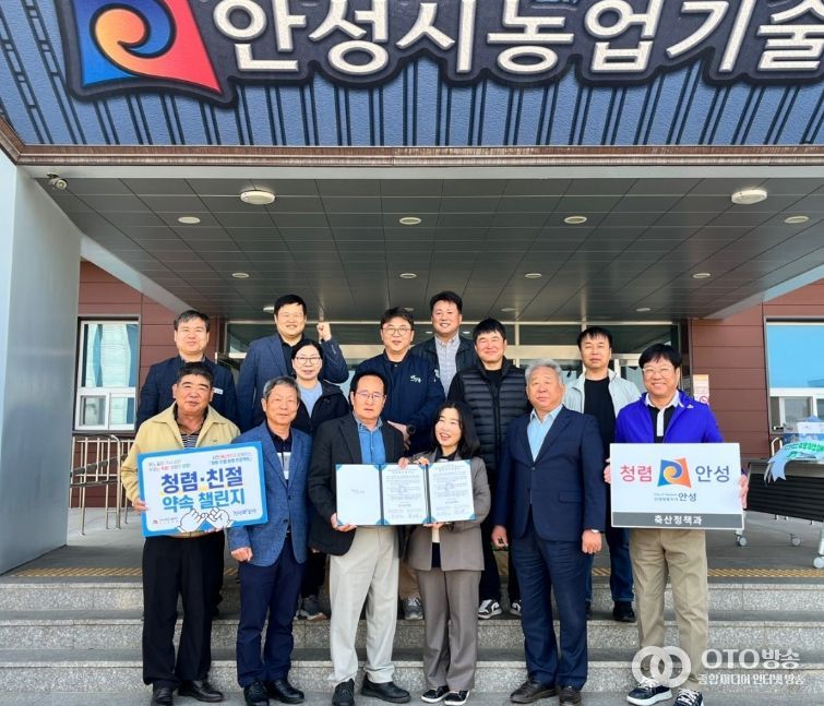 oto방송 김민석 기자 | 안성시 농업기술센터 축산정책과가 지역 축산단체들과 손잡고 투명하고 공정한 행정 실현을 위한 '청렴 행보'에 본격적으로 나섰다. 시는 지난 4월 2일, 안성시 축산단체협의회와 함께 청렴 협약식을 개최하고 신뢰받는 축산행정 구현을 위한 협력 기반을 강화했다고 밝혔다.