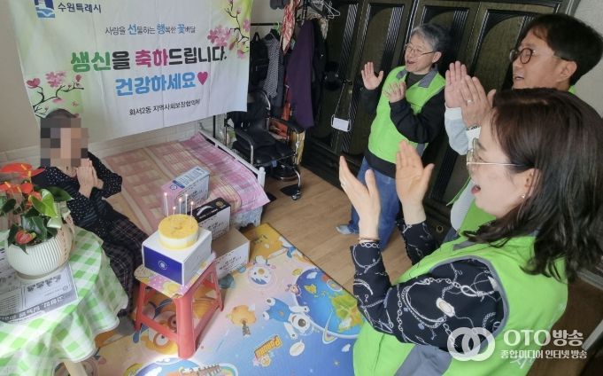 oto방송 김민석 기자 | 수원시 팔달구 화서2동 지역사회보장협의체는 지난 16일, 관내 홀몸 어르신 가정을 직접 방문해 생신을 축하하고 안부를 살피는 ‘선행꽃(사랑을 선물하는 행복한 꽃배달)’ 사업을 추진하며 지역사회에 훈훈한 감동을 전했다.