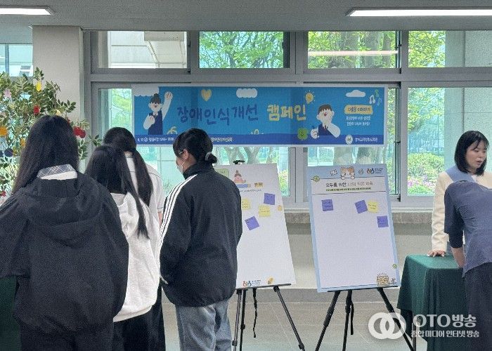 oto방송 김민석 기자 | 경기도교육청특수교육원이 17일 수원북중학교를 찾아 전교생과 교직원을 대상으로 ‘장애인식개선 캠페인’을 진행했다.