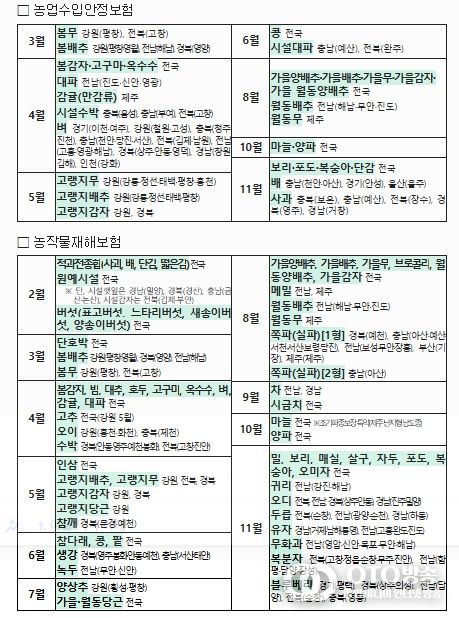 벼는 지난해 4개 시·군을 대상으로 운영했고, 올해 16개 시·군에 신규 도입하여 총 20개 시·군에서 확대 운영된다. 아울러, 봄배추·봄무는 평창 등 주산지 중심으로 시범 운영에 착수하는 한편, 봄감자·고구마·옥수수는 전국으로 확대하여 운영한다.