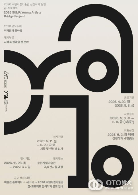 oto방송 김민석 기자 | 경기도 수원시립미술관은 신진작가 발굴 및 창작 지원을 위한 공모 사업‘신진작가 동행 얍-프로젝트(YAB-Project)’를 개최하고 4월 20일부터 5월 8일까지 참여자 모집 공고를 시작한다. 서류 접수는 5월 6일부터 5월 8일 오후 6시까지 이메일을 통해 진행된다.