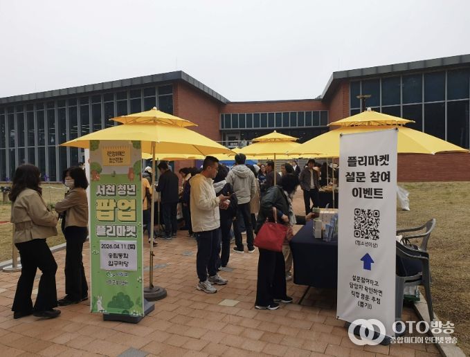 oto방송 김민석 기자 | 서천군은 서천군청년센터와 함께 지난 11일 장항읍 송림동화 입구 앞마당에서 지역 청년업체와 예비창업자가 참여한 ‘서천 청년 팝업 플리마켓’을 개최했다.