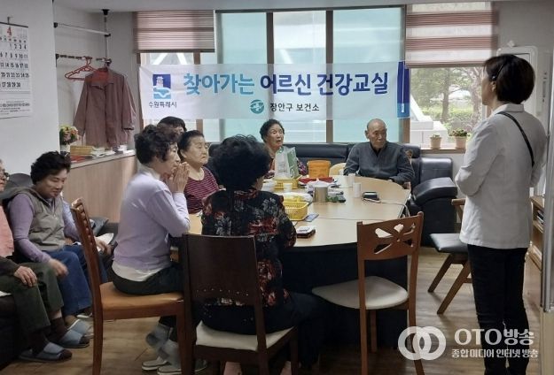 oto방송 김민석 기자 | 수원시 장안구 송죽동은 지난 17일, 관내 로얄팰리스 경로당에서 '찾아가는 어르신 건강교실' 프로그램을 운영했다.