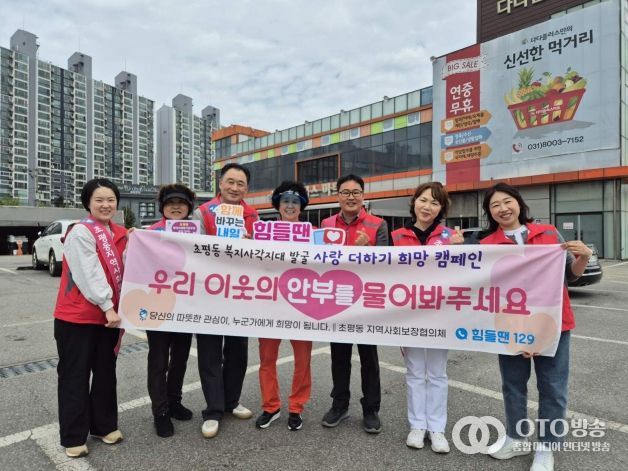유공수 초평동 지역사회보장협의체 민간위원장은 “캠페인 활동을 통해 도움이 필요한 이웃을 조기에 발굴하고 지역 내 나눔 문화를 더욱 확대할 수 있는 뜻깊은 계기가 마련됐다”며 “앞으로도 지속적인 캠페인 활동을 이어가 따뜻한 손길이 끊이지 않는 지역사회를 만드는 데 최선을 다하겠다”고 말했다.