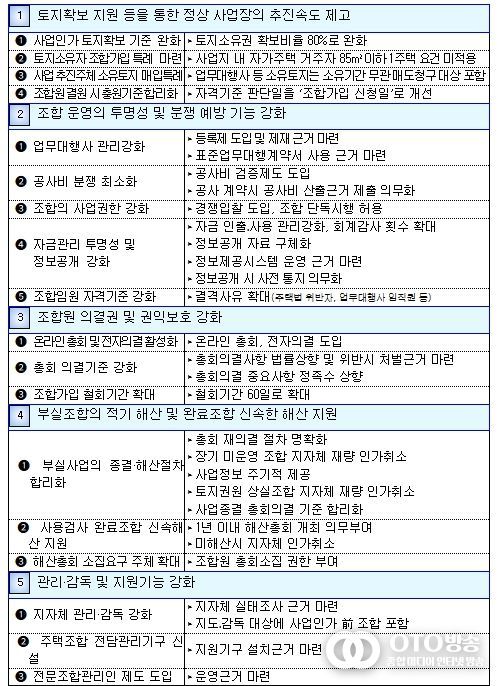 사업이 완료된 조합은 1년 이내 해산총회 개최를 의무화하고 정당한 사유없이 미해산 시 지자체가 직권으로 해산할 수 있는 근거도 마련한다.