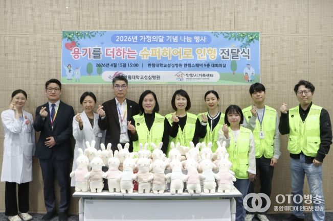 oto방송 김민석 기자 | 안양시 가족센터는 가정의 달을 맞아 지난 15일 한림대학교성심병원을 방문해 치료 중인 환자들을 위한 ‘슈퍼히어로 인형’ 56개를 전달했다고 21일 밝혔다. 전달된 인형은 5월 중 환자들에게 순차적으로 전달될 예정이다.