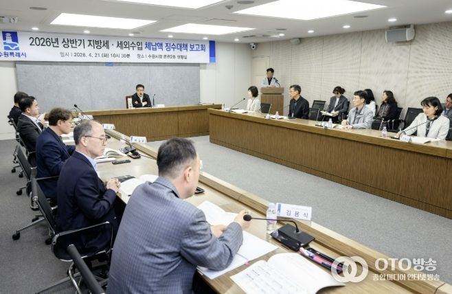 oto방송 김민석 기자 | 수원특례시는 21일 시청 상황실에서 김현수 제1부시장 주재로 상반기 징수대책보고회를 열고, 징수 부서별 징수목표액과 징수 상황을 점검했다.