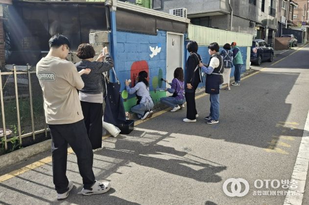 oto방송 김민석 기자 | 지난 23일, 수원시 장안구 율천동의 인적 드문 골목길이 마을의 온기를 품은 거대한 캔버스로 탈바꿈했다. 단순한 환경 미화를 넘어, 주민들이 직접 마을의 이야기를 담아냈다는 점에서 그 의미가 남다르다.