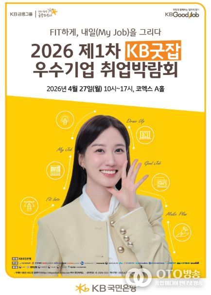 oto방송 김민석 기자 | 한국고용정보원(원장 이창수)은 4월 27일 코엑스 1층 A홀(서울 강남구)에서 개최되는 「2026 제1차 KB굿잡 우수기업 취업박람회」에 참가한다고 밝혔다. KB국민은행 주최로 열리는 이번 행사는 구직자 2만여명을 대상으로 진행되며 250여 곳의 구인기업 및 공공기관이 참가한다.