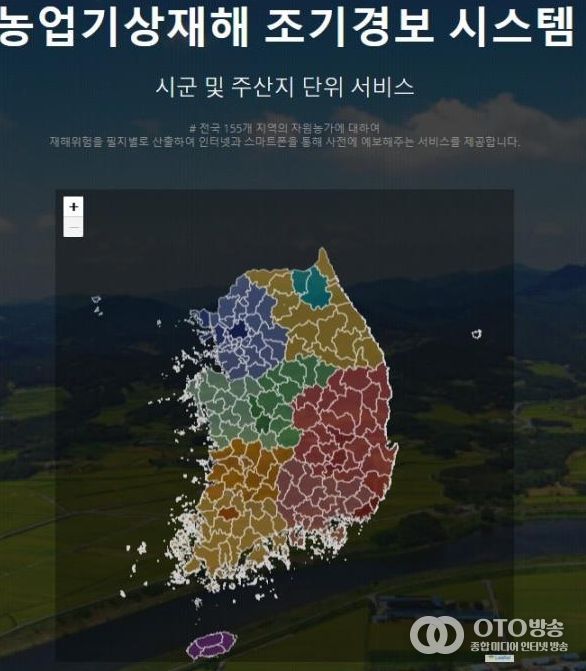 ‘농업기상재해 조기경보서비스’는 전국 155개 지역의 농가를 대상으로 필지별 재해 위험을 산출해 인터넷과 스마트폰을 통해 사전에 예보하는 시스템이다.