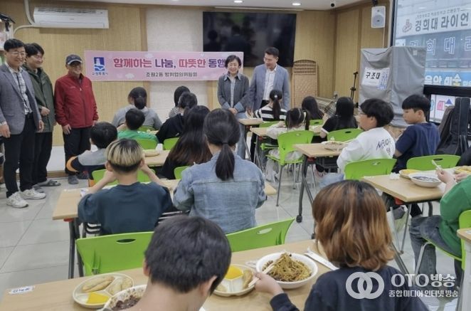oto방송 김민석 기자 | 수원시 장안구 조원2동 방위협의회는 지난 27일, 조원동 드림지역아동센터에서 아이들을 위한 ‘짜장 나눔 행사’를 개최했다.