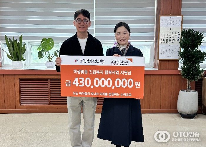 oto방송 김민석 기자 | 수원교육지원청은 오는 4월 28일, 영화청사 교육장실에서 월드비전 경기남부사업본부와 함께‘2026 학생맞춤 긴급복지 지원사업 지원금 전달식’을 개최한다고 밝혔다.
