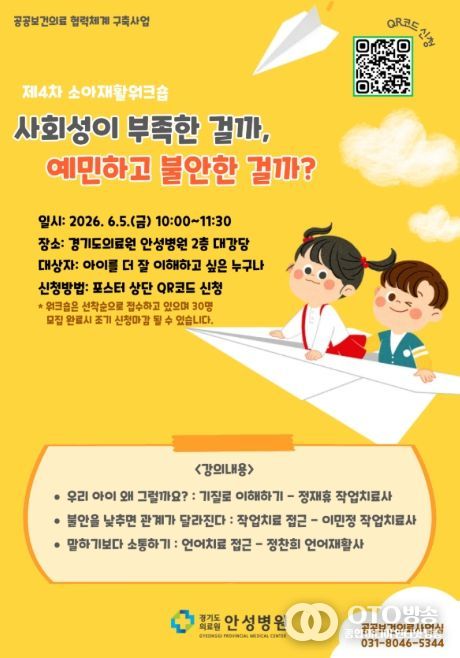 oto방송 김민석 기자 | 평택권 지역책임의료기관인 경기도의료원 안성병원은 공공보건의료 협력체계 구축사업의 일환으로 아동의 발달과 정서적 특성을 이해하기 위한 '제4차 소아재활 워크숍'을 개최하고 참가자를 모집한다고 밝혔다. 이번 워크숍은 “사회성이 부족한 걸까, 예민하고 불안한 걸까?”라는 질문을 중심으로, 아동의 행동을 문제로만 보기보다 기질과 발달 특성으로 이해할 수 있도록 돕는 데 초점을 맞췄다.