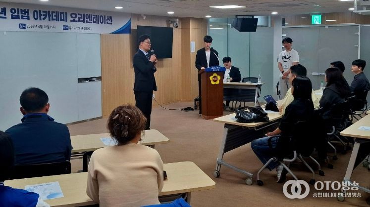 oto방송 김민석 기자 | 경기도의회 더불어민주당 최종현 대표의원(수원7)은 4월 28일 경기도의회 중회의실에서 열린 ‘2026년 청년입법아카데미 오리엔테이션’에 참석해 청년들의 정치 참여와 지방의회 입법과정에 대한 중요성을 강조했다.