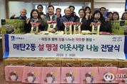 oto방송 김민석 기자 | 수원시 영통구 매탄2동 행정복지센터는 지난 3일, 설 명절을 맞아 관내 어려운 이웃을 위한 ‘이웃사랑 나눔 전달식’을 개최했다. 이번 전달식에는 매탄2동 단체장협의회, 인근 상가, 주민들이 정성껏 마음을 모아 백미 150포, 생필품 300세트, 컵라면 32박스 등 후원 물품을 마련했다. 모아진 물품은 관내 복지 사각지대 발굴 대상자와 저소득 취약계층 가구에 전달되며, 안부 확인도 함께 진행할 예정이다. 승병숙 매탄2동장은 “설 명절을 맞아 도움이 필요한 어려운 이웃을 위해 올해도 잊지 않고 후원해 주신 모든 분들께 감사드리며, 관내 어려운 분들이 따뜻한 설 명절을 보낼 수 있도록 후원물품을 잘 전달하겠다”고 말했다. 한편 매탄2동은 이번 나눔 전달식을 비롯해, 연중 취약계층 대상 지원 사업과 복지 사각지대 발굴 활동을 통해 지역 주민들이 체감할 수 있는 복지 서비스를 제공하고 있다.