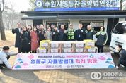 oto방송 김민석 기자 | 수원시 영통구는 지난 12일 영통발전연대가 다가오는 설 명절을 맞아 영통구 자율방범대 초소를 방문하여 격려 물품을 전달했다고 밝혔다. 영통구 자율방범대는 각종 범죄·사고가 우려되는 관내 취약 구역을 집중 순찰하며 안전한 지역사회를 조성하기 위해 활동하고 있는 자율적인 자원봉사 단체이다. 이영종 영통발전연대 회장 및 임원들은 영통구 매탄3지대를 비롯한 5개 동 자율방범대 초소를 방문해, 명절을 앞두고도 지역 치안 강화를 위해 힘쓰고 있는 대원들의 노고를 격려했다. 이영종 영통발전연대 회장은 “바쁜 와중에도 늦은 밤까지 지역 안전을 위해 기꺼이 헌신하시는 대원 여러분의 노고에 진심으로 존경과 감사를 표한다”며 “여러분의 헌신으로 영통구가 범죄 없는 안심 마을로 자리 잡을 수 있었던 만큼, 앞으로도 주민들이 평온한 일상을 누릴 수 있도록 든든한 파수꾼이 되어주시길 부탁드린다”고 말했다. 장수석 영통구청장은 “지역 공동체의 안전을 위해 자발적으로 봉사에 참여해 주시는 자율방범대원 여러분께 깊이 감사드린다. 앞으로도 자율방범대와 함께 소통하며 영통구 발전을 위해 최선을 다하겠다”