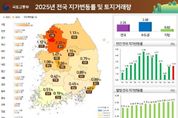 oto방송 김민석 기자 | 국토교통부와 한국부동산원(원장 손태락)은 '25년 연간 지가변동률 및 토지거래량을 발표했다. ◆ 지가변동률 '25년 연간 전국 지가는 2.25% 상승했다. 상승폭은 '24년(2.15%) 대비 0.10%p 확대, '23년(0.82%) 대비 1.43%p 확대된 것으로 나타났다. '25년 4분기 지가변동률은 0.61%로, 3분기(0.58%) 대비 0.03%p, '24년 4분기(0.56%) 대비 0.05%p 높은 수준으로 나타났다. (지역별) '25년 지가변동률은 수도권(2.77% → 3.08%)은 '24년 변동률 대비 높은 수준, 지방권(1.10% → 0.82%)은 낮은 수준을 보였다. (시·도) 서울(4.02%), 경기(2.32%) 2개 시도가 전국 평균(2.25%)을 상회했다. (시·군·구) 서울 강남구 6.18%, 서울 용산구 6.15%, 서울 서초구 5.19% 등 252개 시군구 중 44개 시군구가 전국 평균을 상회했다. 또한, 252개 시군구 중 200개 시군구가 0.00% ~ 2.40% 변동률을 보인 가운데, 수도권이 지방보다