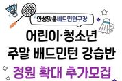 oto방송 김민석 기자 | 안성시시설관리공단은 안성 시민 생활체육 활성화를 위해 현재 운영 중인 주말 어린이・청소년 배드민턴 강습반 정원을 확대하고 추가 수강생을 모집한다고 밝혔다. 이번 주말 어린이・청소년 배드민턴 강습반은 개설 이후 학부모와 수강생들의 높은 관심 속에 연일 정원이 마감될 정도로 큰 호응을 얻고 있다. 특히 주말을 활용해 어린이와 청소년들이 체계적으로 생활 체육을 접할 수 있다는 점에서 학부모들의 만족도가 높은 프로그램으로 자리 잡고 있다. 공단은 이러한 시민 수요를 적극 반영하기 위해 강습반 정원을 기존보다 확대하고, 오는 3월 23일 오전 9시부터 3월 31일 오후 10시까지 초등학생부터 고등학생까지의 어린이·청소년을 대상으로 선착순 10명을 추가 모집한다. 신청은 실내체육관 사무실에 전화로 문의한 뒤 방문 접수로 진행될 예정이다. 이정찬 이사장은 “시민들의 높은 관심에 부응하기 위해 앞으로도 누구나 쉽게 참여할 수 있는 생활체육 환경을 만들어 가겠다”고 전했다. 현재 안성시시설관리공단에서는 시민들의 건강증진을 위하여 주말 강습반 외 매주 2회(화,목) 오전‧오후‧저녁‧시니어