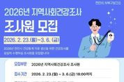oto방송 김민석 기자 | 천안시는 내달 6일까지 ‘2026년 지역사회건강조사’를 수행할 조사원을 모집한다고 23일 밝혔다. 지역사회건강조사는 질병관리청이 주관하는 국가승인통계로, 지역 주민의 흡연과 음주, 신체활동, 만성질환 이환 여부 등 건강행태 및 건강수준 전반을 조사하게 된다. 수집된 데이터는 지역 보건의료계획과 건강증진 사업 추진을 위한 기초 자료로 활용된다. 선발된 조사원은 사전 교육을 이수한 후 오는 5월 16일~ 7월 31일 표본 가구를 직접 방문해 조사 업무를 수행하게 되며, 업무가 완료되면 소정의 수당이 지급될 예정이다. 모집인원은 서북구와 동남구 각 6명씩 총 12명이며, 천안시에 거주하는 20세 이상 성인 중 컴퓨터와 인터넷 사용이 가능한 누구나 지원할 수 있다. 참여 신청은 천안시 서북구보건소 건강관리팀으로 방문하거나 우편으로 신청서를 제출하면 된다. 이현기 서북구보건소장은 “시의 내실있는 지역 건강통계 산출을 위해 책임감 있게 활동할 시민분들의 많은 참여와 관심 바란다”고 말했다.