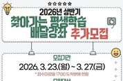 oto방송 김민석 기자 | 화성특례시는 시민의 다양한 학습 수요를 반영한 맞춤형 평생학습 프로그램 운영을 위해 ‘2026년 상반기 찾아가는 평생학습 배달강좌’를 추가 모집한다고 밝혔다. ‘찾아가는 평생학습 배달강좌’는 시민이 원하는 학습 주제와 장소, 시간, 강사를 직접 선택해 운영하는 학습자 중심 프로그램으로, 시민들이 자발적으로 학습공동체를 구성해 참여할 수 있는 것이 특징이다. 이를 통해 시민들의 다양한 학습 욕구를 충족하고 평생학습 문화 확산에 기여할 것으로 기대된다. 이번 추가 모집은 3월 23일부터 3월 27일까지 진행되며, 화성시민(성인) 또는 화성시 소재 사업장에 근무하는 직장인으로 구성된 7인 이상의 학습모임이면 신청할 수 있다. 모집 규모는 병점권역 3개 학습모임이다. 선정된 학습모임에는 최대 20시간의 강사비가 지원되며 수강료는 무료다. 다만 교재비와 재료비는 학습자가 부담해야 한다. 강좌 운영 기간은 4월 13일부터 7월 3일까지다. 신청은 화성시 시민강사 통합정보시스템에 등록된 배달강사와 강좌 일정 및 계획을 사전에 협의한 후 신청서를 작성해 이메일 또는 화성시평생학습관으로