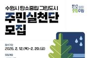 oto방송 김민석 기자 | 수원특례시가 ‘생활 속 탄소중립 실천’을 확산하기 위해 2월 12일부터 20일까지 탄소중립 그린도시 사업 대상지 주민·생활권자를 대상으로 ‘수원시 탄소중립 그린도시 주민실천단’ 신규 참여자를 모집한다. 주민실천단은 탄소중립 그린도시 사업 대상지 주민과 생활권자로 구성된 시민 참여 조직이다. 지역 내 탄소중립 실천 활동과 홍보, 주민 참여 활동 등을 한다. 특히 수원시는 올해 주민실천단을 70명 규모로 확대 운영할 계획이다. 지난해 운영 성과를 바탕으로 신규 참여자를 모집해 참여 기반을 넓히고, 일회성 캠페인을 넘어 생활 속 실천이 자연스럽게 이어지는 탄소중립 문화를 확산할 계획이다. 모집 대상은 고색동·오목천동·탑동·서둔동·호매실동·평동·평리동 일부 등 탄소중립 그린도시 사업 대상지 거주민과 해당 지역 생활권자다. 주민실천단은 자원봉사 형태로 활동하며 ▲생활 속 탄소 저감 실천 ▲지역 맞춤형 실천 활동 ▲탄소중립 실천 홍보 ▲분과 활동, 회의 ▲역량 강화 교육 등에 참여한다. 수원시는 탄소중립 그린도시 주민실천단 확대 운영에 맞춰 참여자 역량을 높이는 교육과