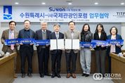 oto방송 김민석 기자 | 수원특례시와 (사)국제관광인포럼(TITF)이 ‘글로벌 관광도시 수원’을 만들어 가기 위해 협력한다. 수원시와 (사)국제관광인포럼은 2일 시청 상황실에서 업무협약을 체결하고, ‘제5회 세계관광산업콘퍼런스 개최(6월 5일~6일)’와 ‘2026~2027 수원 방문의 해’의 성공적인 추진을 위해 협력하기로 했다. 협약식에는 이재준 수원특례시장과 국제관광인포럼 김정배 회장, 신연성 부회장, 금기형 사무총장, 신중목 후원회장, 연정아 이사 등이 참석했다. 양 기관은 협약에 따라 ‘제5회 세계관광산업콘퍼런스 공동 개최·운영’, ‘수원시 관광자원 홍보·국제 관광시장 확대 등을 협력하기로 했다. 수원시는 이번 협약을 계기로 국제 관광 네트워크를 확대하고, 수원의 관광자원과 도시 경쟁력을 세계에 알려 ‘1500만 관광객 시대’를 열 계획이다. (사)국제관광인포럼은 2013년 문화체육관광부 인가를 받아 설립된 관광 분야 전문 단체다. 국내·외 관광 전문인 간 교류 협력을 바탕으로 세계 관광산업 발전과 지속가능관광 육성을 지원하고 있다. 김정배 국제관광인포럼 회장은 “