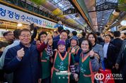 oto방송 김민석 기자 | 이재명 대통령은 30일 오후 제주 타운홀미팅 '제주의 마음을 듣다' 종료 후, 김혜경 여사와 함께 1박 2일 제주 일정의 마지막 일정으로 동문시장을 방문했다. 동문시장은 제주시 도심에 위치한 대표적인 전통시장으로, 대통령 부부의 방문 소식에 상인들과 방문객들은 놀라움 속에 환호와 박수로 이들을 맞이했다. 입구에 서 있던 한 외국인 관광객은 어디서 왔냐는 이 대통령의 질문에 “오스트레일리아”고 답하기도 했다. 이 대통령 부부는 셀카촬영과 악수를 이어가며 과일모찌 가게에 들러 온누리상품권으로 한라봉모찌와 딸기모찌를 구입해 즉석에서 강유정 대변인, 하정우 수석 등과 함께 시식했다. 이동 내내 이어지는 셀카요청에도 이 대통령 부부는 반갑게 응했다. 그러자 시장을 찾은 많은 도민들은 이동 중인 이 대통령 부부를 향해 "사랑해요", "와 대박", "화이팅"을 외치는 소리로 화답했다. 이 대통령은 특히 어린이들의 사진 요청에 적극적으로 답했다. "애기 있어요"라는 소리가 들리면 발걸음을 멈추고 아이들과 하이파이브를 하거나 반갑게 셀카를 찍었다. 또한 강아지를