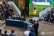 oto방송 김민석 기자 | 이재명 대통령과 국빈 방한한 프라보워 수비안토 인도네시아 대통령은 오늘 오후 청와대 녹지원에서 육군 태권도 시범대 공연을 관람했다. 녹지원은 조선시대 당시 활쏘기 등 무과 시험과 군사 조련이 행해졌던 곳으로, 이재명 대통령이 청와대에 복귀한 이후 이곳에서 야외행사가 열린 것은 이번이 처음이다. 육군 태권도 시범대는 우리 군 최초로 태권도 시범을 전담하는 부대로, 올해 1월 창설됐다. 강인한 정신력과 뛰어난 기량을 바탕으로 대한민국 군의 위상과 태권도의 기백을 세계에 알리고 있다. 특히 오늘 공연은 육군 태권도 시범대 창설 이후 처음으로 외국 정상 앞에서 선보이는 시연으로 그 의미를 더했다. 청와대는 프라보워 대통령이 군 출신으로 무예에 깊은 관심을 갖고 있는 점을 고려해 육군 태권도 시범대 공연을 준비했다. 시범대는 첫 번째 공연으로 연꽃 창작품새와 격파를 선보였다. 연꽃을 형상화한 동작으로 시작된 창작품새는 어떠한 환경에서도 흔들림 없이 임무를 수행하는 군인 정신과 태권도의 절제된 아름다움을 표현했다. 이어진 격파 시연에서는 단련된 기술과 우리 군의 강인함을