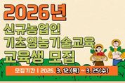 oto방송 김민석 기자 | 천안시농업기술센터는 오는 25일까지 ‘상반기 신규농업인 기초영농기술교육’ 참여자를 모집한다고 13일 밝혔다. 교육은 천안시로 이주한 지 5년 이내인 신규농업인과 귀농을 희망하는 시민으로, 모집인원은 30명이다. 교육은 내달 3일부터 6월 5일까지 10회에 걸쳐 귀농·귀촌 이해, 주요 작물 기술교육, 관련 법률 및 현장교육 등이 진행될 예정이다. 교육 신청은 천안시농업기술센터에 방문접수하거나 천안시통합예약시스템을 통해 온라인으로도 가능하다. 김양섭 천안농업기술센터 소장은 “이번 교육을 통해 농촌사회에 안정적으로 정착할 수 있길 바란다”며 “귀농 활성화를 위해 다양한 교육을 지속적으로 추진할 것”이라고 말했다.