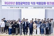 oto방송 김민석 기자 | 충청광역연합이 4개 시·도(대전·세종·충북·충남) 파견 직원들의 정책 이해도를 높이고 조직 결속력을 다지기 위한 본격적인 역량 강화 행보에 나섰다. 충청광역연합은 3월 26일 보람동 행복누림터에서 전 직원을 대상으로 ‘2026년 충청광역연합 직원 역량강화 워크숍’을 개최했다고 밝혔다. 이번 워크숍은 연합 직원들이 연합의 설립 취지와 주요 정책을 빠르게 숙지하고 향후 충청권 행정환경 변화에 능동적으로 대응할 수 있도록 마련됐다. 이날 워크숍에서는 최민호 충청광역연합장이 직접 강사로 나서 ‘행정환경에 따른 연합의 역할’을 주제로 특강을 진행했다. 최 연합장은 특강을 통해 초광역 협력체의 필요성을 강조하며, 충청권의 공동 번영을 위한 직원들의 사명감과 역할을 당부했다. 특히, 현대의 시대정신이 ‘에너지 확보, 기술 인력 양성, 기업 우호적 환경 조성, 물관리’임을 강조하며, 시대정신을 반영한 정책을 구상하고 추진하는 것이 공직자에게 필요한 자세라고 힘주어 말했다. 이어지는 강의에서는 대전연구원 염인섭 책임연구위원이 ‘연합의 출범 배경 및 역사, 주요